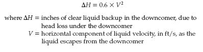 • If the downcomer clearance is too small, then liquid backs up in the downcomer, and the trays above flood. To calculate the height of liquid in the downcomer, due to liquid flowing through the downcomer clearance: